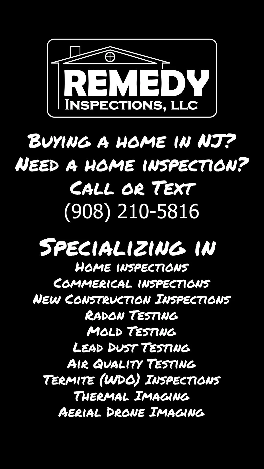 Remedy Inspections, LLC is a locally owned and operated company based out of Rockaway, NJ. We are fully insured, licensed, and certified to serve all of New Jersey. Contact us today to schedule your home inspection! Learn more . . .